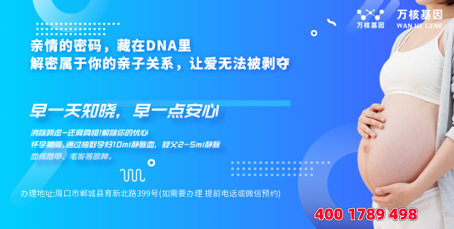 郸城个人亲子鉴定办理地址:周口市郸城县育新北路399号(如需要办理 提前电话或微信预约)-预约电话:4001789498,服务地区包括:川汇区、淮阳区、扶沟县、西华县、商水县、沈丘县、郸城县、太康县、鹿邑县、项城市等郸城周边地区,郸城亲子鉴定基因检测的服务范围涵盖了广义的亲子鉴定、DNA验证、亲子鉴定证明等等。